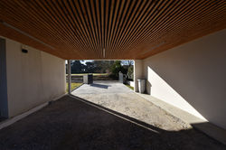 La sous-face de l’abris voiture est constituée en bois afin d’apporter une qualité de traitement sur l’entrée.